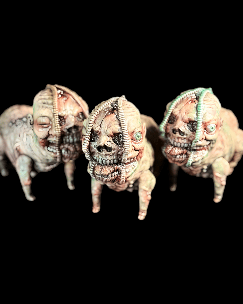 Miscreation x Kaiju Tan Zipperface Pigman. Soft vinyl figure, approximately 8" length by 6" height. (Sold blind bag/ picked by random.)
